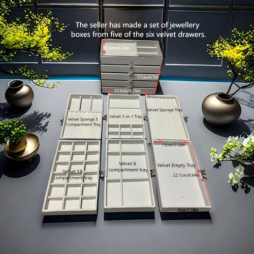 5-layer jewelry box, velvet drawer tray, transparent jewelry storage box, elegant jewelry display box
